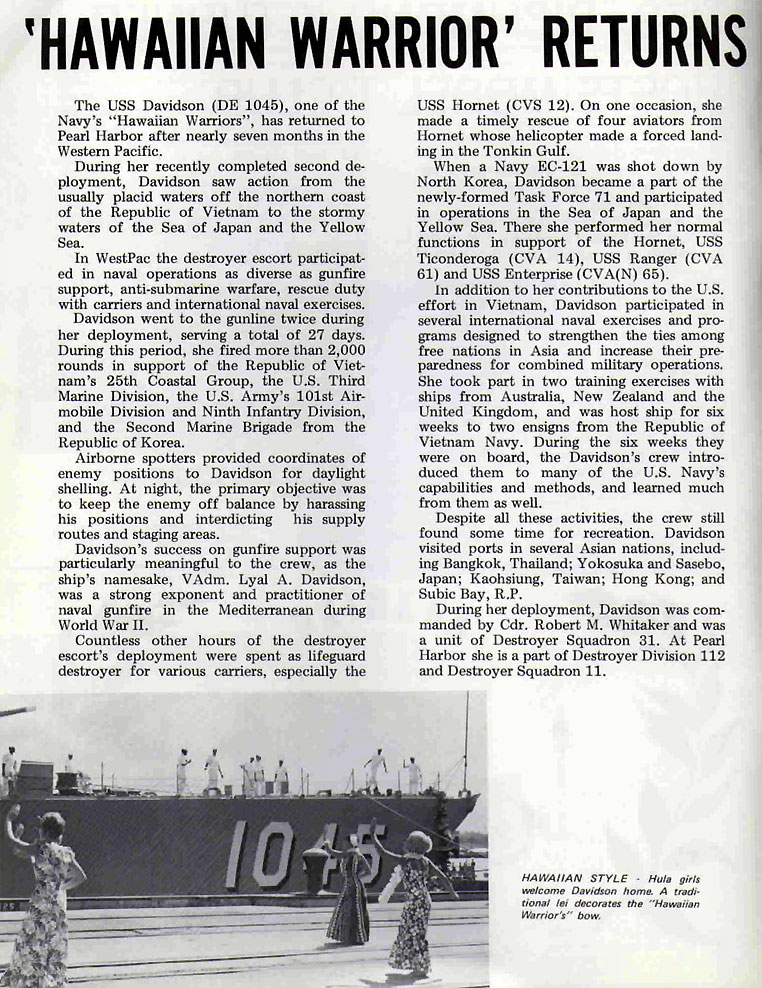 Article (April 1969) in New York Times on Task Force 71 off Korea - Davidson participated